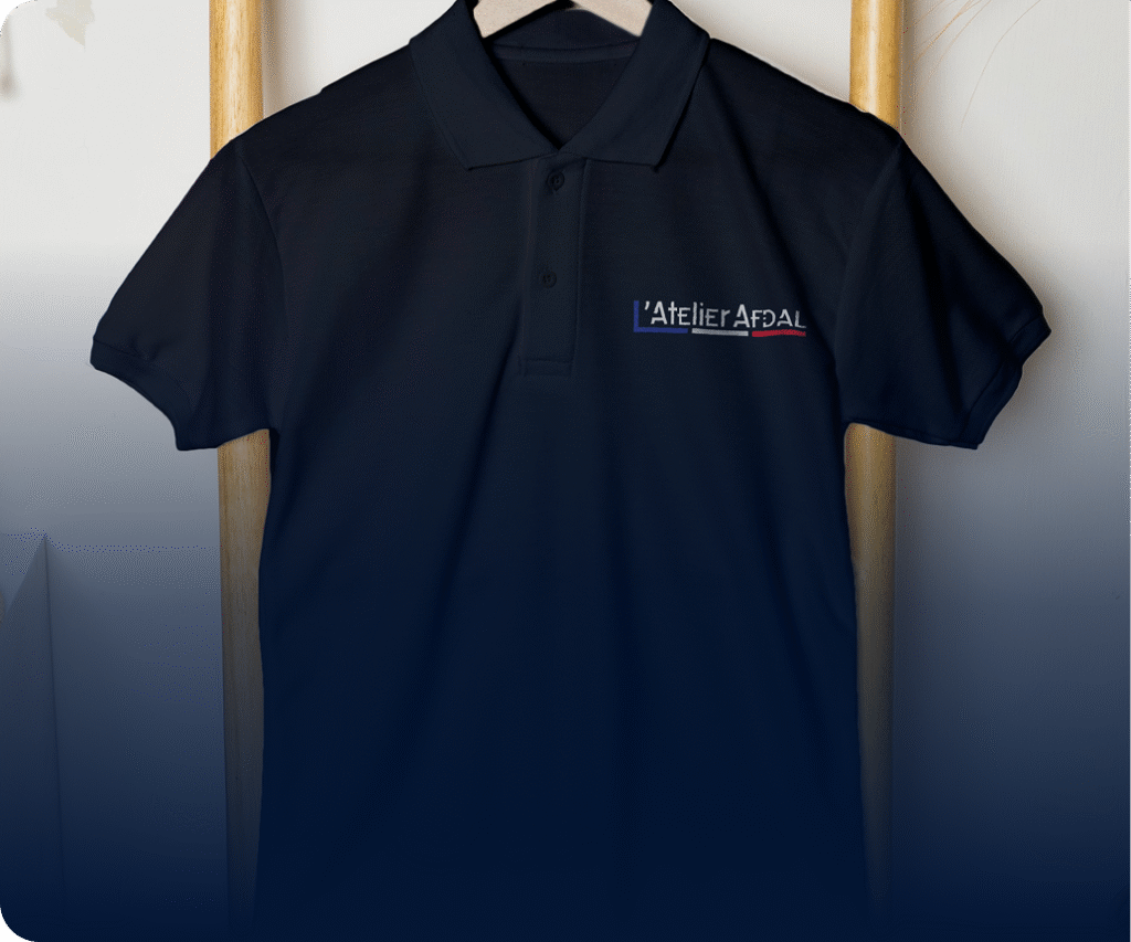 Chaque polo personnalisé créé chez Atelier Afdal reflète notre engagement envers l’excellence. De la sélection des matériaux à la finition des détails, chaque étape de la production est rigoureusement contrôlée pour garantir un produit final impeccable. Nos équipes expérimentées mettent leur savoir-faire au service de vos idées, en veillant à ce que chaque polo soit à la fois esthétique, confortable et durable. Offrez-vous des polos personnalisés qui feront la différence.